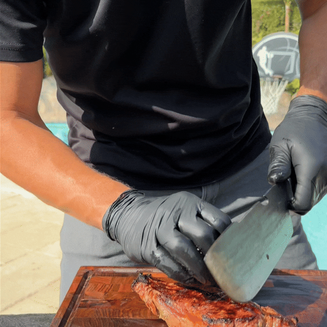The steel runs through the entire handle, giving the knife a solid, balanced feel in your hand. The weight is intentional, making it easy to control and letting the knife do the work for you.